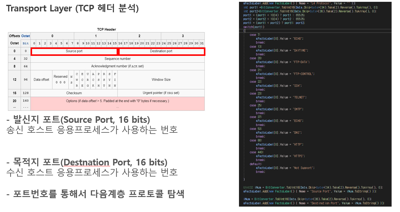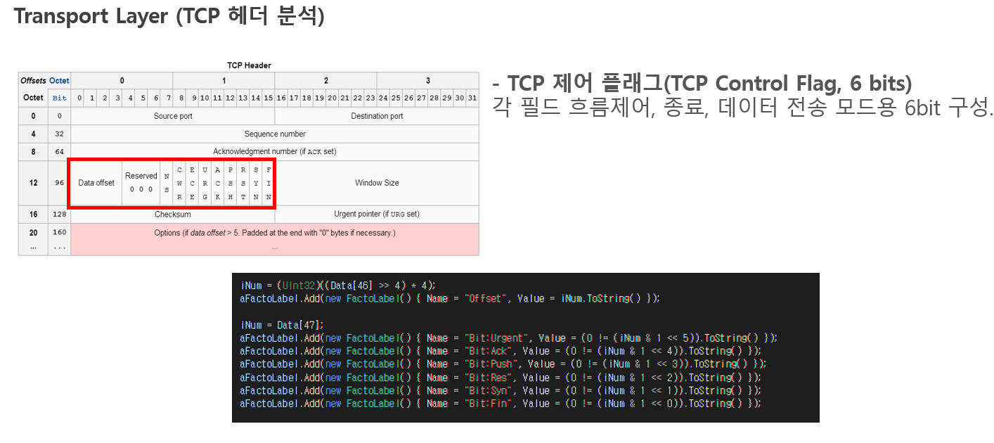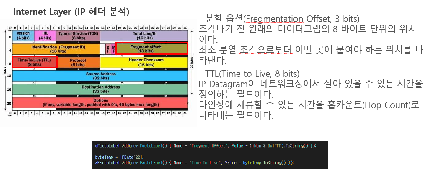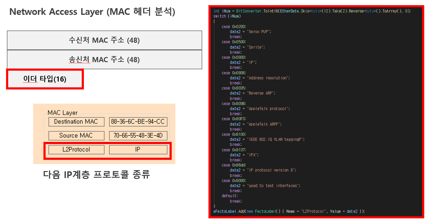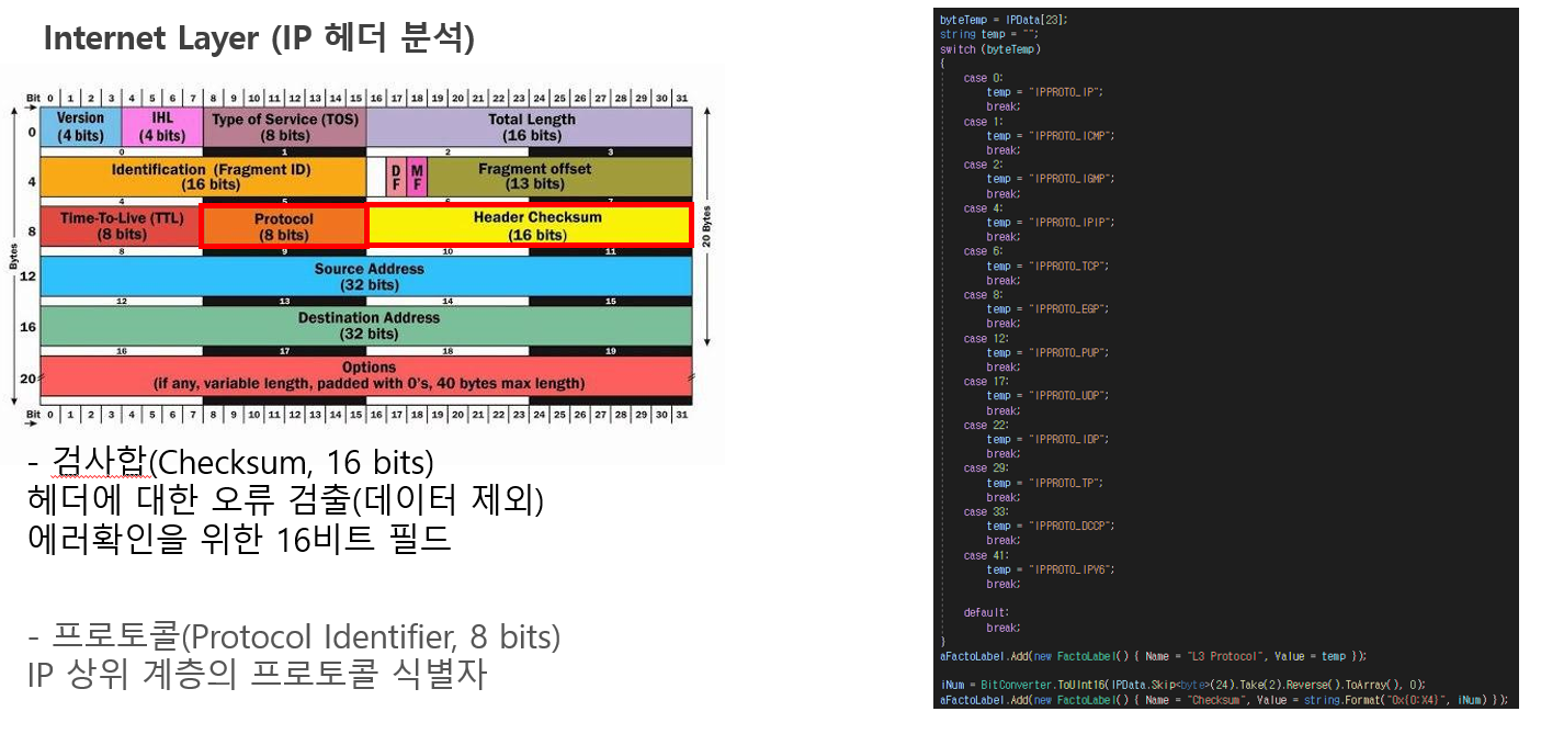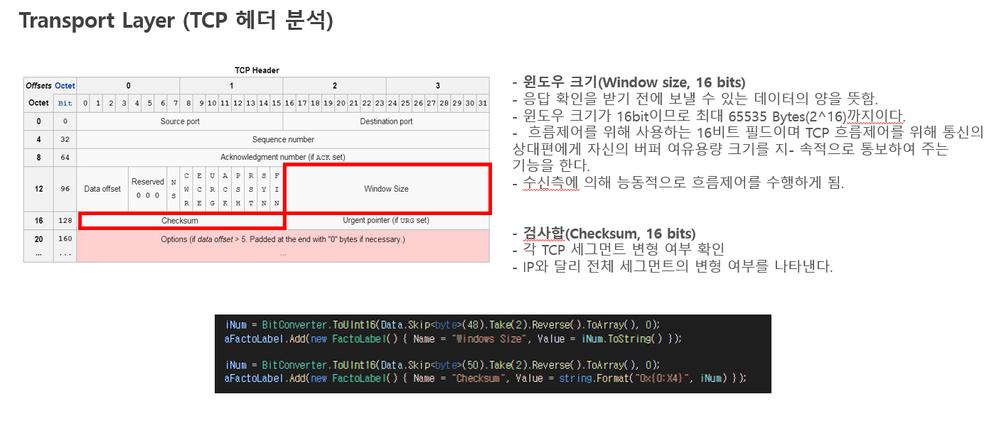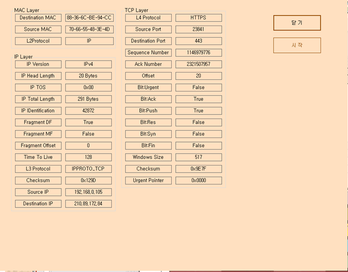 TCP/IP 4계층 중 MAC계층, IP프로토콜, TCP프로토콜만 추출