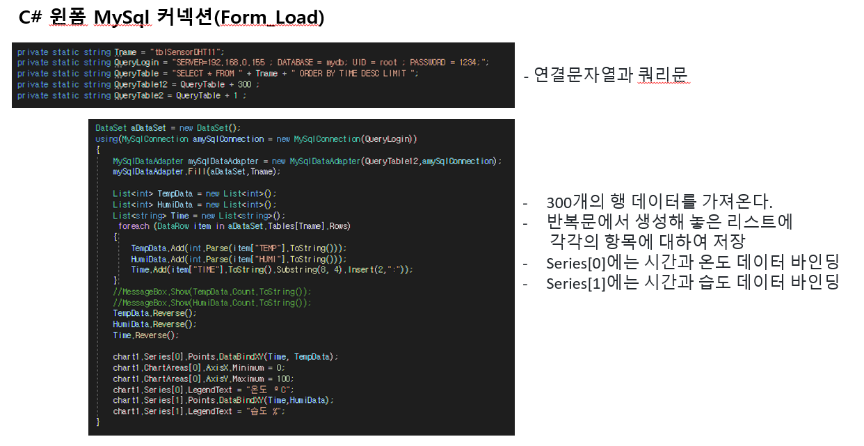 C# 윈폼차트 <= 라즈베리파이(MySql서버) <=DHT11온습도 센서C# 2020. 9. 18. 14:36