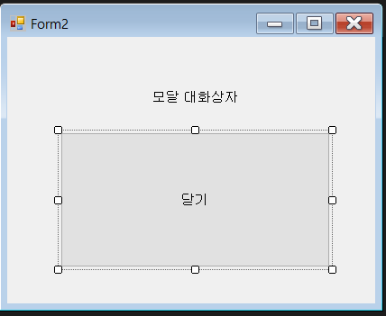 //폼 1번~~~ using System; using System.Windows.Forms; namespace Dialogboxtest { public partial class Form1 : Form { public Form1() { InitializeComponent(); } private void button1_Click(object sender, EventArgs e) { Form2 form = new Form2(); form.ShowDialog(); //모달팝업 //form.Show();//모달리스 } } }폼 2번~~~~ using System; using System.Windows.Forms; namespace Dialogboxtest { public partial class Form2 : Form { public Form2() { InitializeComponent(); } private void button1_Click(object sender, EventArgs e) { Close(); } } }1번에서 버튼 누르면 2번 폼을 부른다. form.ShowDialog()로 부르면 모달 form.show() 로 부르면 모달리스