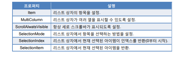 - 리스트 상자의 프로퍼티