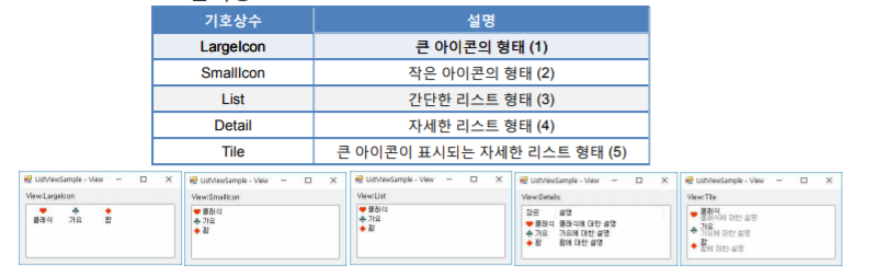 - System.Windows.Forms 네임스페이스에 포함된 View 열거형을 값으로 가짐