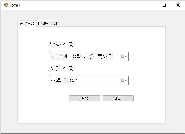 C# 윈폼 DateTimePicker와 Tab 컨트롤을 사용한 알람시계C# 2020. 8. 20. 16:16